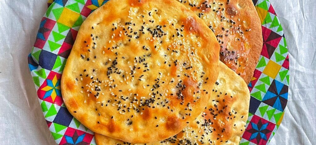 Traditionally, Roghni Naan are Naans which are made using white flour, yogurt, milk and butter in a super hot clay oven, called a tandoor. They’re sprinkled with a hearty helping of sesame seeds and nigella seeds (kalonji) which leave a delicious, savoury aftertaste.